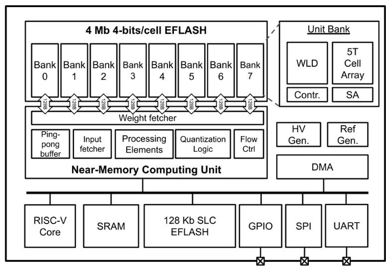 A 28 nm AI microcontroller with tightly coupled zero standby power weight memory featuring standard logic compatible 4 Mb 4-bits/cell embedded flash technology