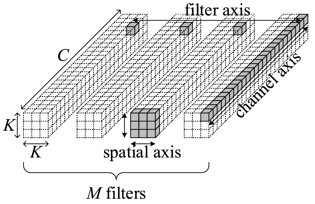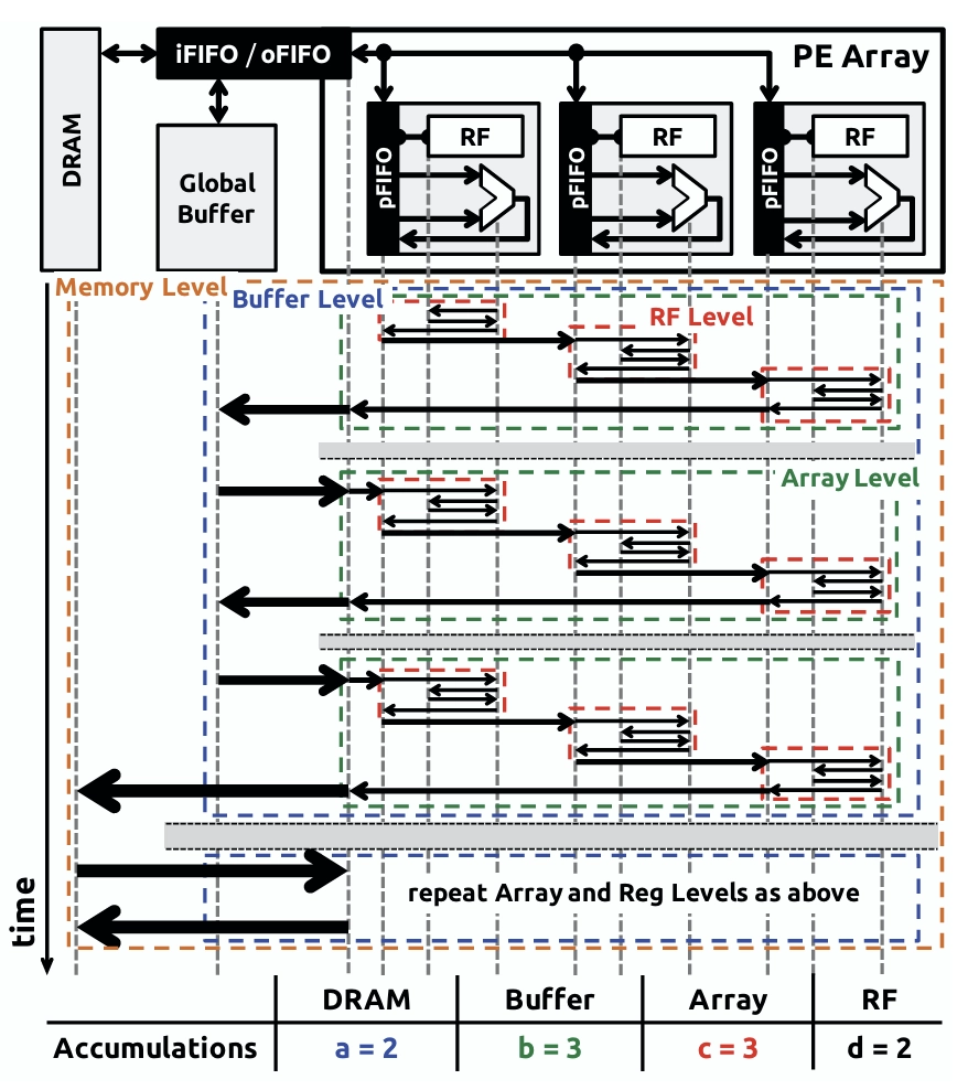 We show that DNN accelerator micro-architectures and their program mappings represent specific choices of loop order and hardware parallelism for computing the seven nested loops of DNNs, which enables us to create a formal taxonomy of all existing dense ...